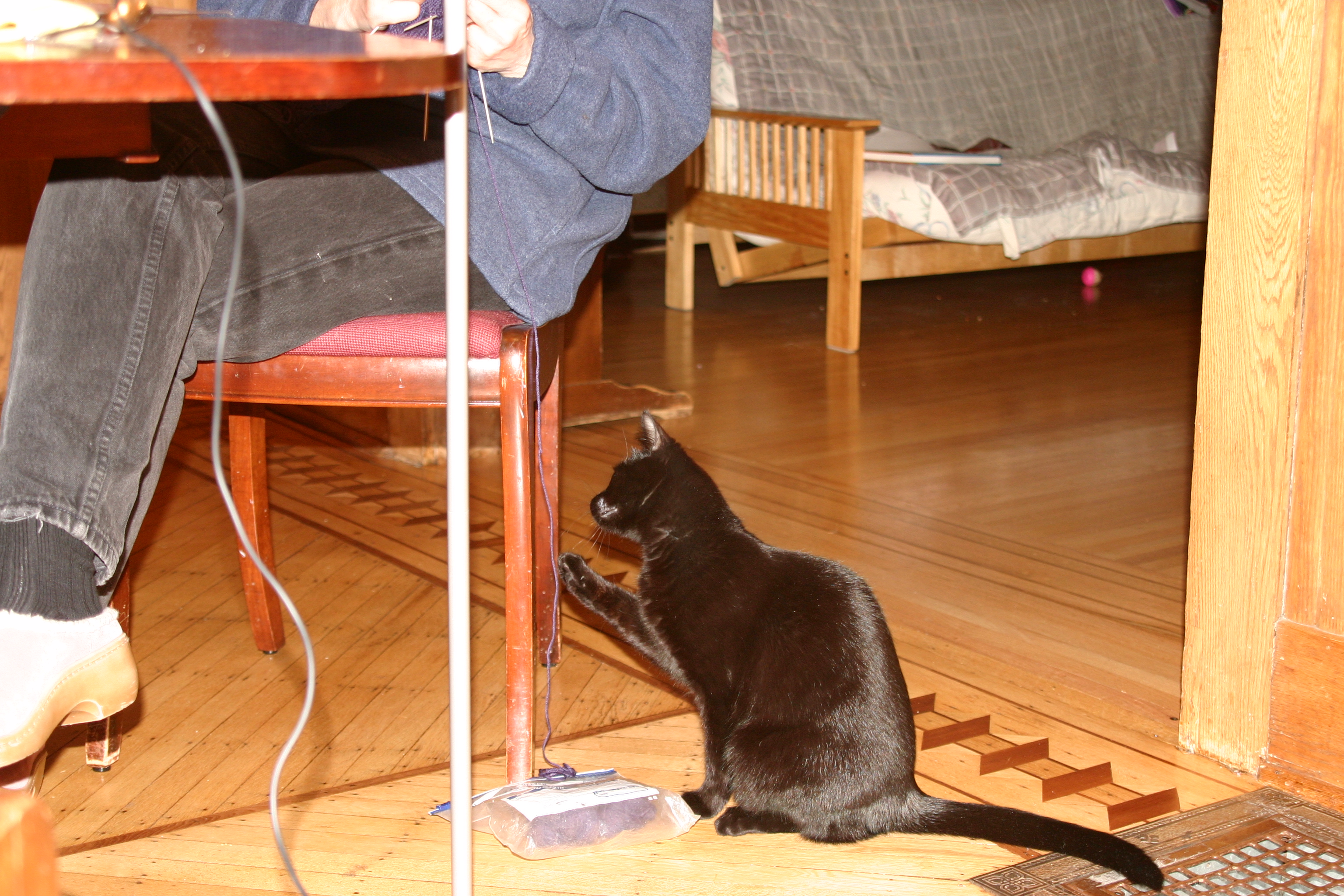 Midnight helps Liz knit Cindy's Socks